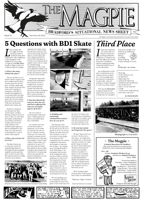 Issue 13 has been printed, folded and sent to HowDo?! for distribution earlier than expected thanks to Footprint Workers Co-op! Sources say some have been found in the city centre and as far as Halifax.